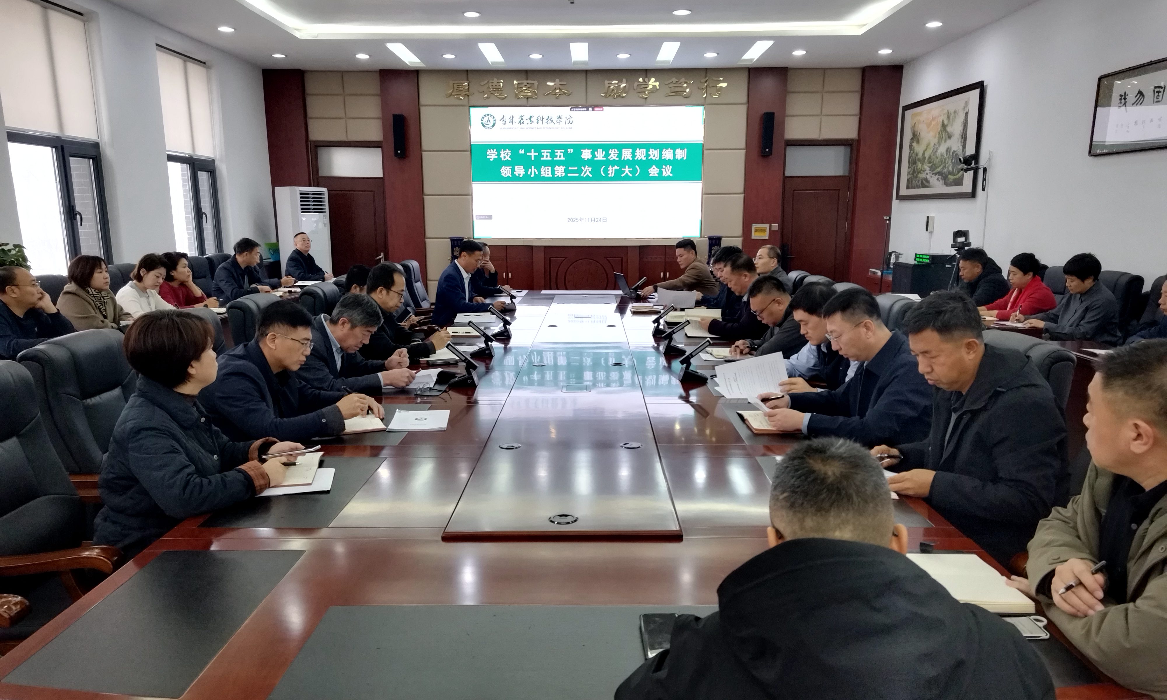 11月24日上午,学校在务本楼第二会议室召开“十五五”事业发展规划编制领导小组第二次(扩大)会议。学校领导、各单位负责人参加会议,会议由副校长潘力主持。